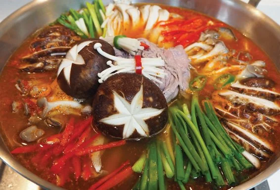 4. 냄비에 손질해 놓은 버섯과 채소, 소고기, 양념장을 넣은 뒤 육수를 부어 끓여 드시면 된답니다.