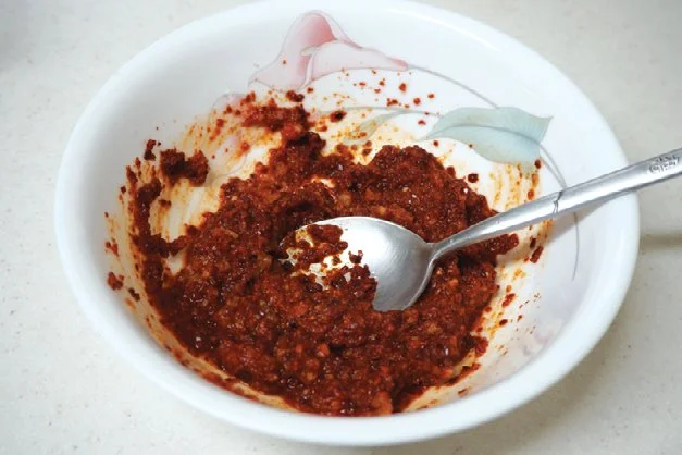 : 고춧가루 3큰술, 다진 마늘 2큰술