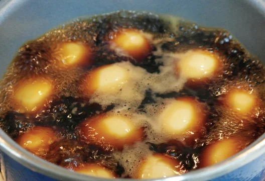 3. 냄비에 삶은 계란을 넣고 물 2컵, 간장 2/3컵, 설탕 1큰술을 넣어 끓여주세요.