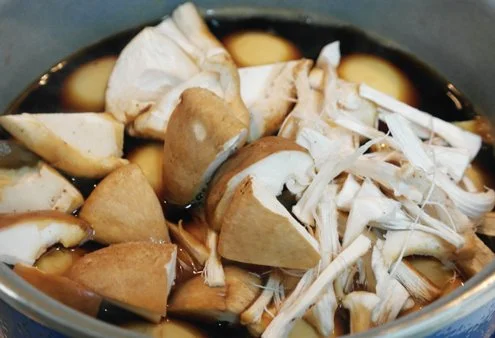 4. 끓으면 중간 불로 조절하고 표고버섯을 넣은 뒤 조리세요.