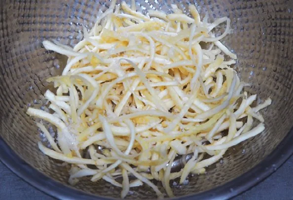 : 껍질을 벗긴 도라지를 물에 담그면 시간에 따라 쓴맛이 제거됩니다. 도라지는 소금을 넣고 주무르면 뻣뻣함이 사라져 요리하는 데 편하답니다.