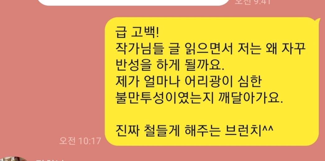 얼마전 브런치작가들의 대화방에서 내가 쓴 고백의 글