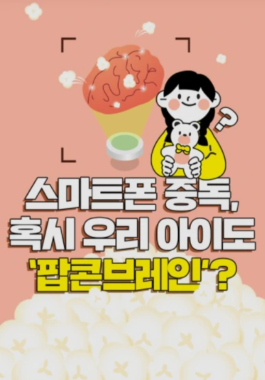 팝콘 브레인 : 2011년 미국의 공공과학 도서관 학술지인 플로스 원(PLOS one)에 처음 등장한 말로, 뇌가 팝콘처럼 톡톡 튀어 오르는 감각적인 것에만 반응하고 정작 현실에는 무감각해지는 현살을 일컫는 말이다. 이 학술지에서는 전자기기에 익숙한 아이들의 뇌 구조가 이러한 '팝콘 브레인'으로 바뀐다고 이야기한다. 요즘 어린아이들이 책을 읽을 때도 손으로 터치를 하고 이에 아무런 반응이 없으면 재미가 없다고 던져버리는 것도 무엇이든 즉각적으로 반응하는 스마트폰에 익숙해져 있기 때문에 나타는 현상이다.