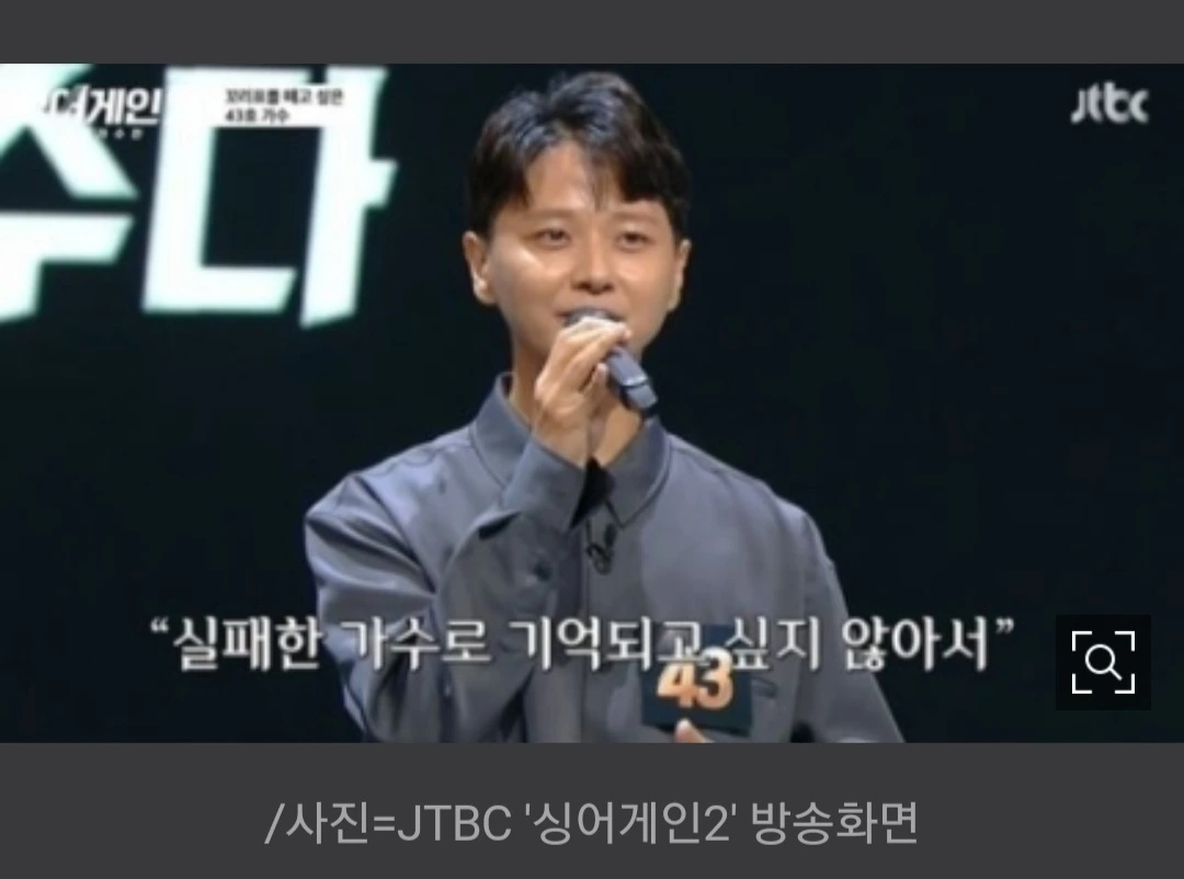 90년대 후반 2000년대 초반 우리 대학 다니던 시절에 참 인기있던 발라드 가수였다. 발라드를 무척 좋아했던 나도 참 좋아했던 가수다. 외모적으로는 정말 그때하고 하나도 달라진 게 없었다. 세월이 비껴간다는게 딱 맞는 사람같았다. 무대에 선 그는 자신을 '천국과 지옥을 오간 가수다'라고 소개했다. 그리고 그 프로그램에 도전하게 된 이유가 다시 가수로서 유명해진다거나 성공하기 위함이 아니라, '실패한 가수로 기억되고 싶지 않아서'라고 했다.