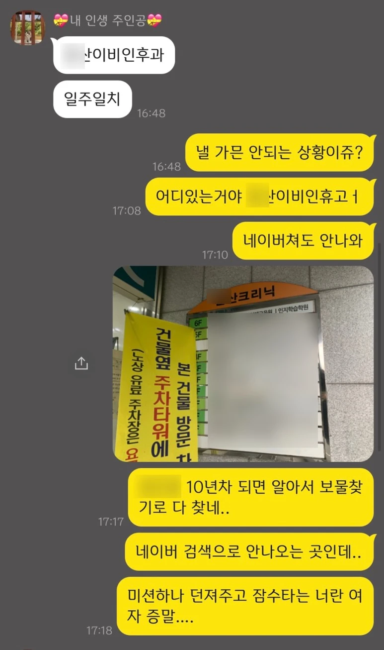 왜 있지도 않은 "XX이비인후과"에 가서 약을 타오라고 할까. 그럼 얘는 도대체 어디 병원에 갔다 왔던 걸까. 미션하나 툭 던져주고 왜 잠수 타버리는 걸까. 내가 미션을 성공한 것보다 김 부장님이 태워다 주는 게 더욱 중요한 것이었을까.