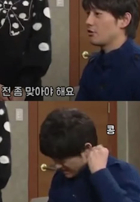 와이프가 갑자기 정신 차려야지 하며 고사리 주먹으로 본인 머리를 내려친다. 내 머리를 내려칠 때는 헐크 주먹이었는데 본인 머리 내려칠 때는 고사리 주먹이네.