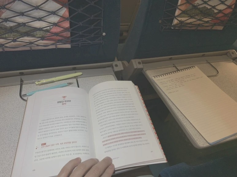 KTX 안 약간의 소음과 진동이 오히려 독서에 집중하게 만들어준다. 또한, KTX에서의 독서는 내가 더욱 열심히 살고 있는 것 같은 느낌에 휩싸이게 한다.