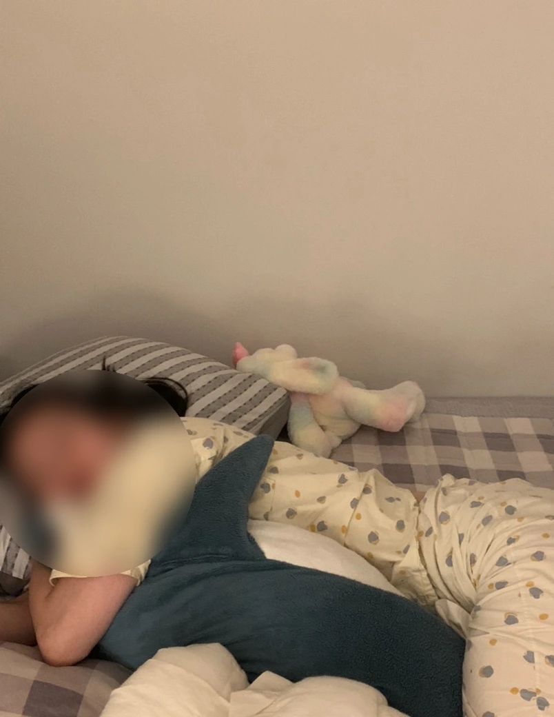 와이프가 잘 때 안고 자는 아빠상어 애착인형이 있는데, 와이프의 거친 잠버릇에 매일 밤마다 씹고 뜯고 맛보고 목조름당하고 있다.