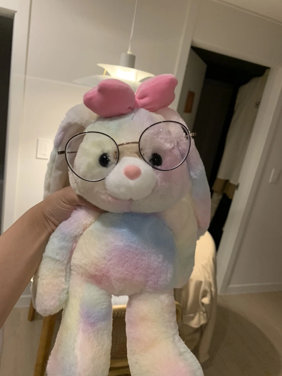 집에 돌아와 토끼 인형의 이름도 붙여준다.