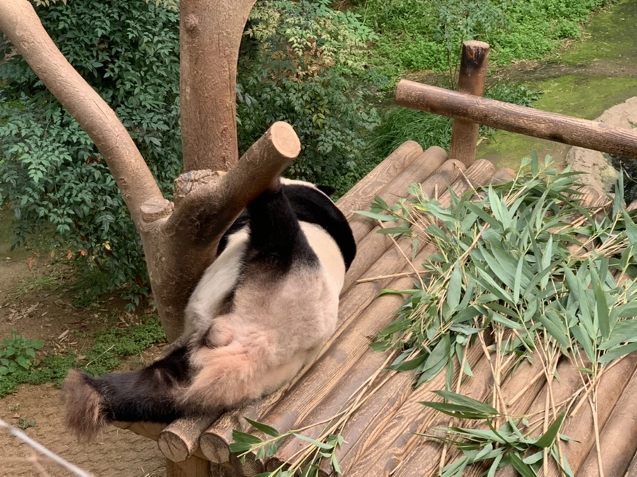 그렇게 들어간 판다월드. 푸바오와 러바오 모두 잠들어 있다. 러바오 자는 자세가 와이프랑 장인어른이랑 똑같다. 한쪽 다리 들고 자는 거.