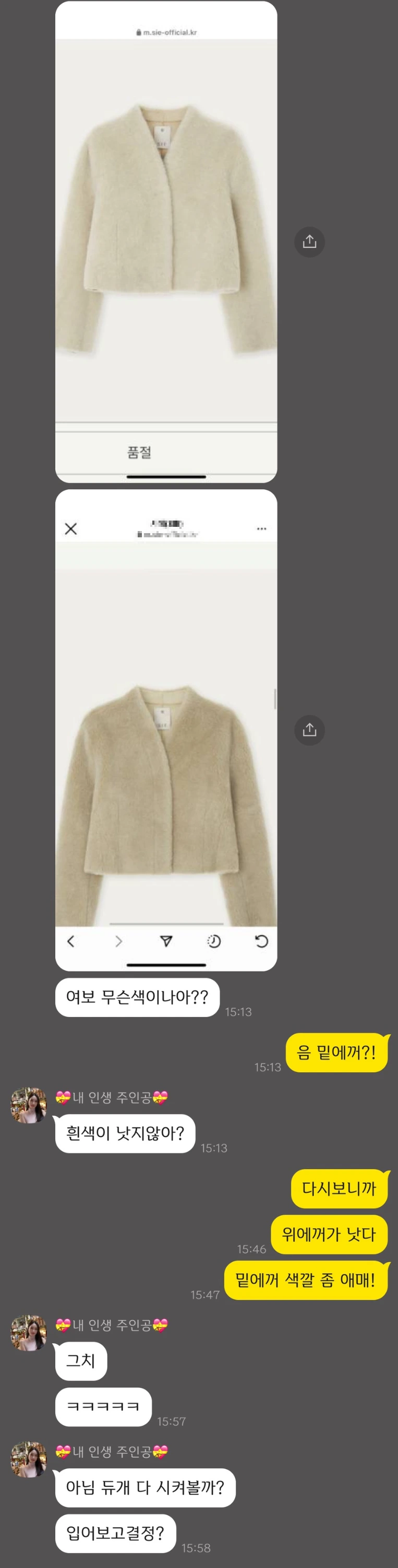 와이프는 결국 시* 시어링 자켓 구매에 실패했다. 얼마나 흥분했으면 카톡에 제대로 된 문장이 없다. 뭐 구매 과정에서 결제 방법을 카카오페이로 해서 그렇다고 하는데 그건 내 알바가 아니다.