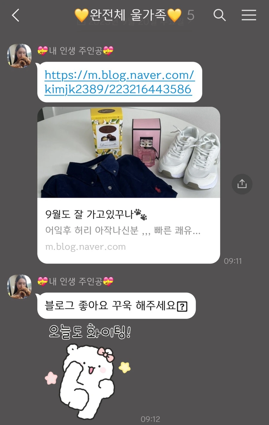 또한 시댁 단톡방에 본인 블로그에 방문해 달라고 부탁하기도 한다.