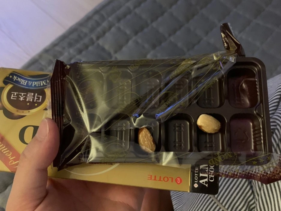 내가 먹은 건 와이프가 초콜릿만 빨아먹고 뱉어놓은 아몬드였네.