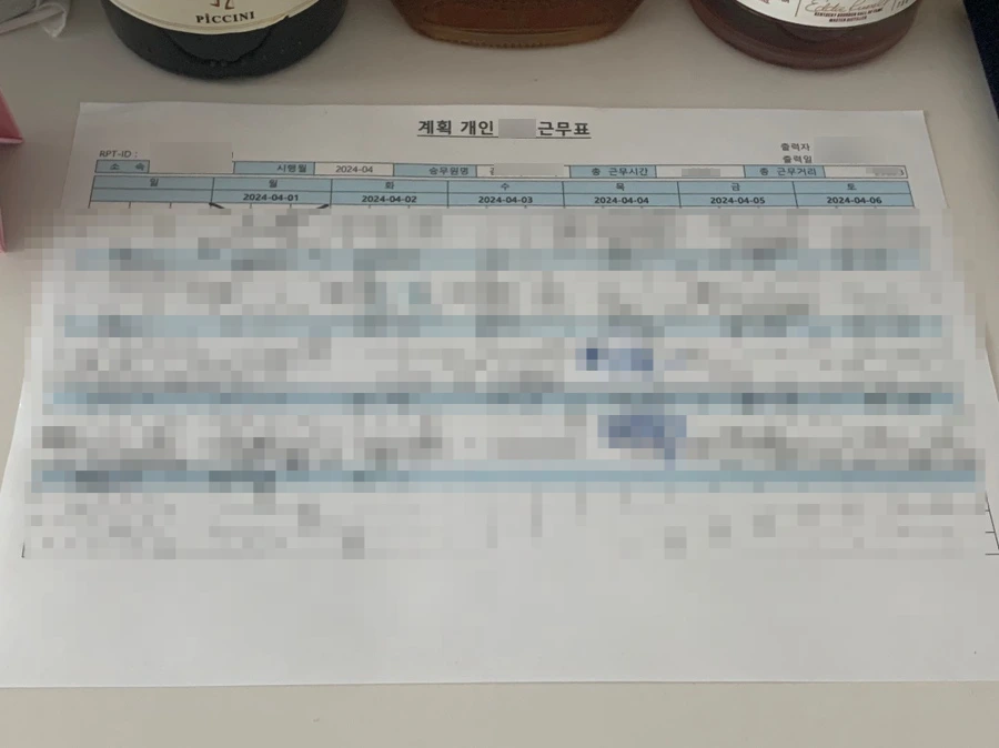 매번 근무 일정을 이야기해주는 것이 귀찮기에 근무표를 출력해 집에서 가장 잘 보이는 곳에 두고 있다.