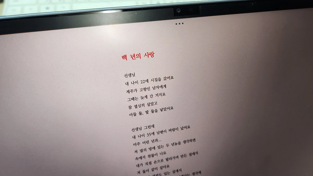 자연의 바람과 새소리를 들으며 책을 읽고 영감을 받은 뒤 쓰는 글. 그리고 시를 써 본 적이 없는데 버튼 하나 누르면 자연스럽게 흘러 나오는 음악처럼 그렇게 시라는 것도 썼다.