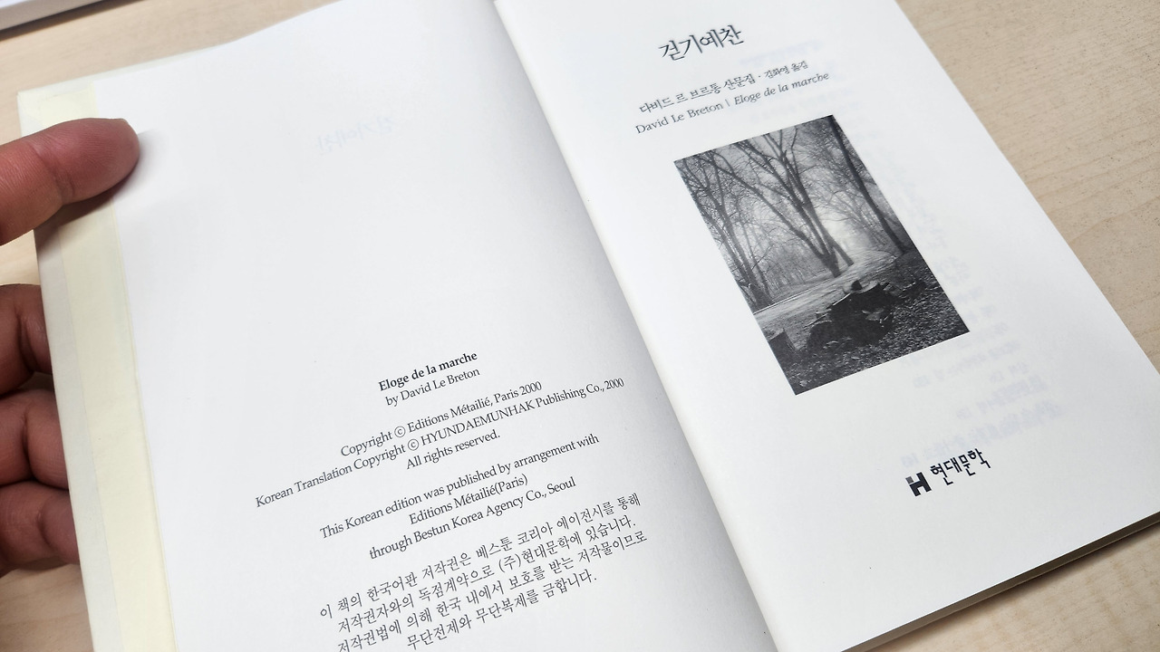 1순위는 중고책이지만 없는 경우에는 2순위로 새 책을 구입하는데 이번 선정도서로 바꾼 책이 다비드 르 브르통의 [걷기 예찬]이다. 보통 상 이상의 상태의 책을 사는데 이번에는 중 정도도 그냥 구입을 했다. 도착한 지 3일이 되어서야 박스를 열었는데 왠 걸... 표...표지가 없다. 중고를 잘 안 샀던 걸까. 이런 상황에 당황했고, 그러면 저자와 역자 소개도 없을까? 넘겨 본다.