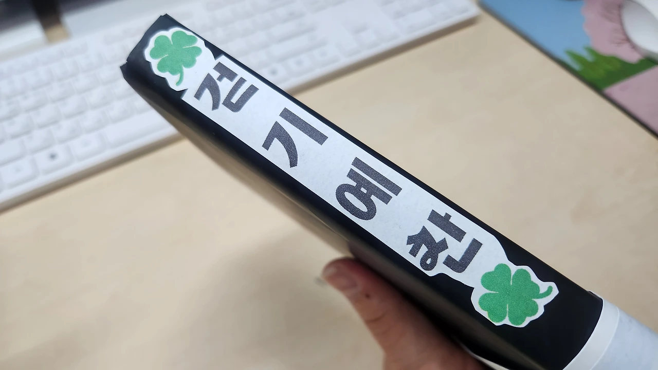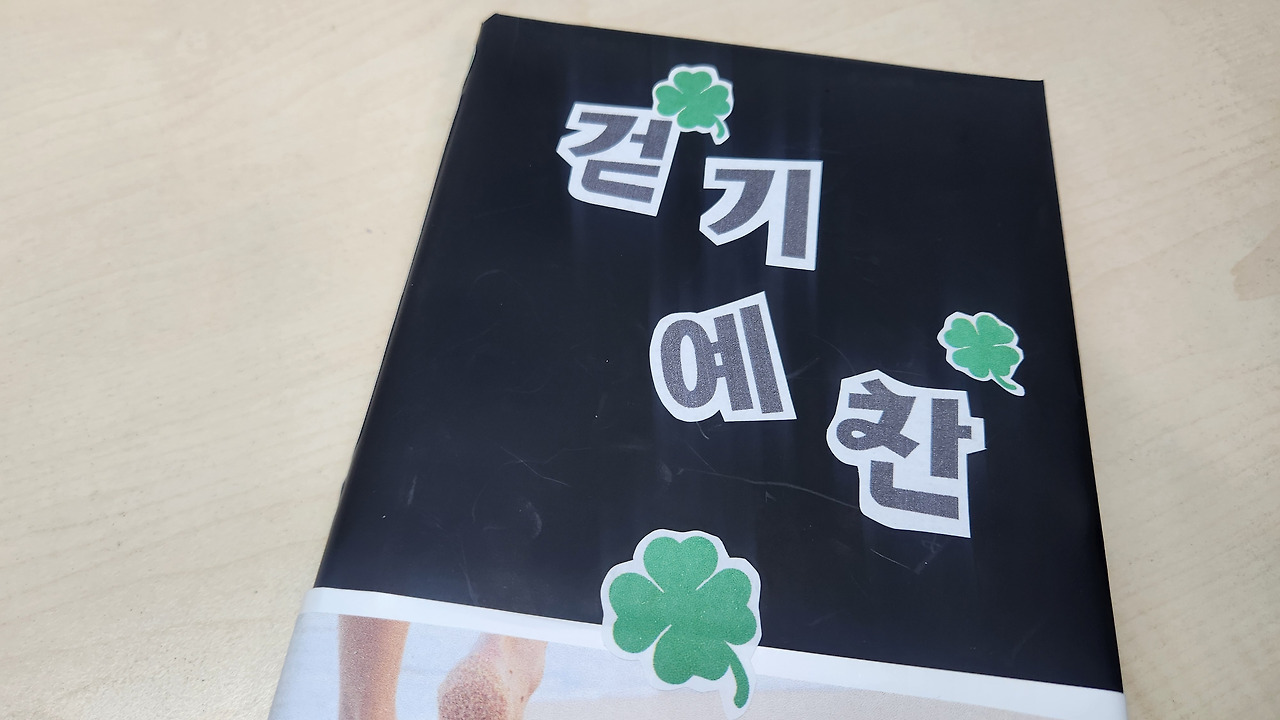 그리고 제목도 붙였다. 마음에 들지 않았지만 무엇보다 제목이 필요했던 이유는 책꽂이에 꽂았을 때 제목이 보였으면 해서 예쁘지는 않아도 도전했다. 그리고 걷다가 클로버 찾던 추억이 떠올라 클로버도 넣었다.