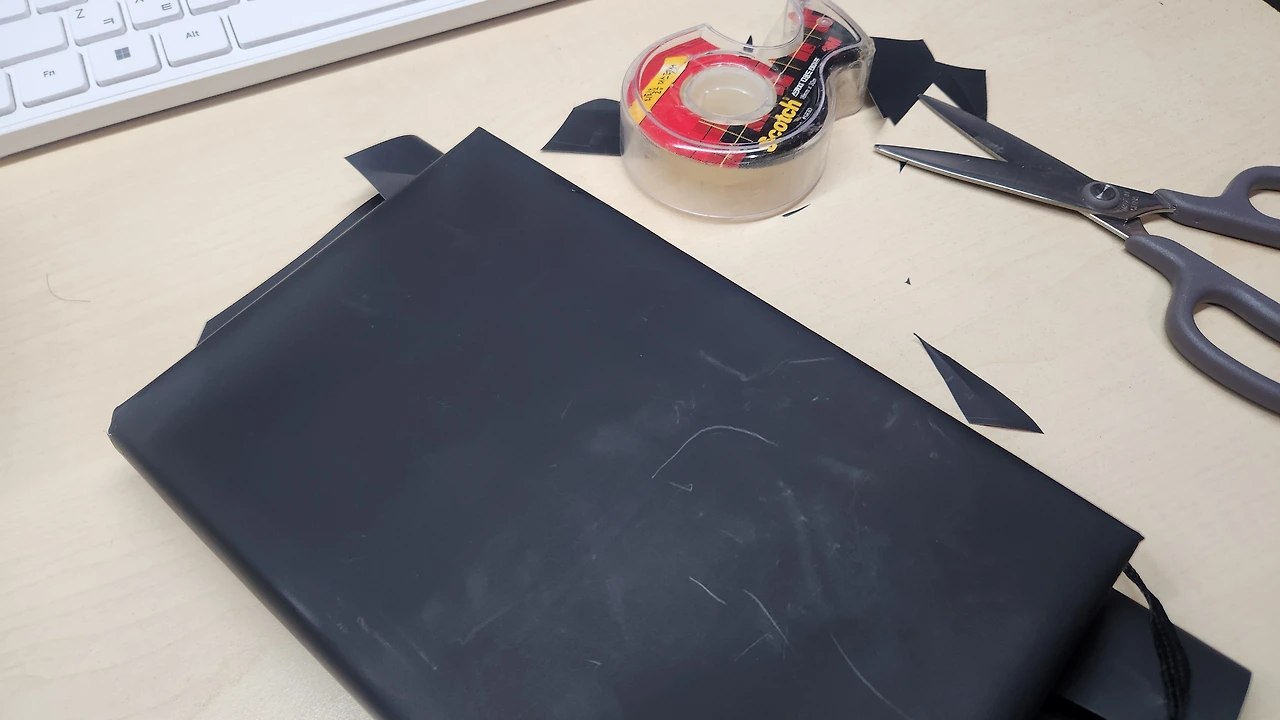 검정과 하양의 꼴라보로 책을 싸면 좋겠는데, 책을 싸기에는 좀 두껍지만 살짝 코팅이 되어 좋았다. 먼저 검정으로 쌌다.