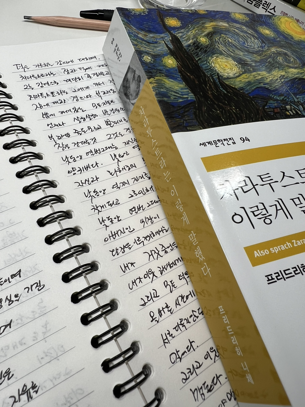 최근엔 니체의 <차라투스트라는 이렇게 말했다>를 한 쪽씩만 필사 중이다.