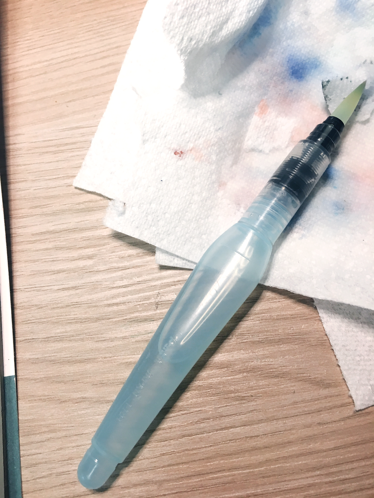 휴지를 작게 찢어 준비, 붓터치에 고인 물 양을 조절하자. 안그러면...