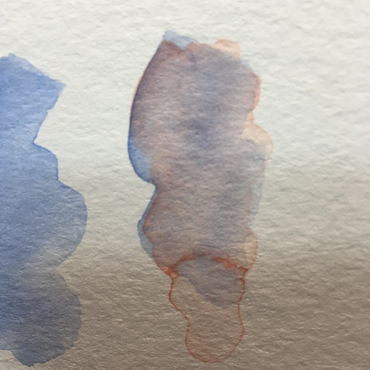 종이에 고인 물이 마르며, 아래와 같은 물감 자국이 생긴다.