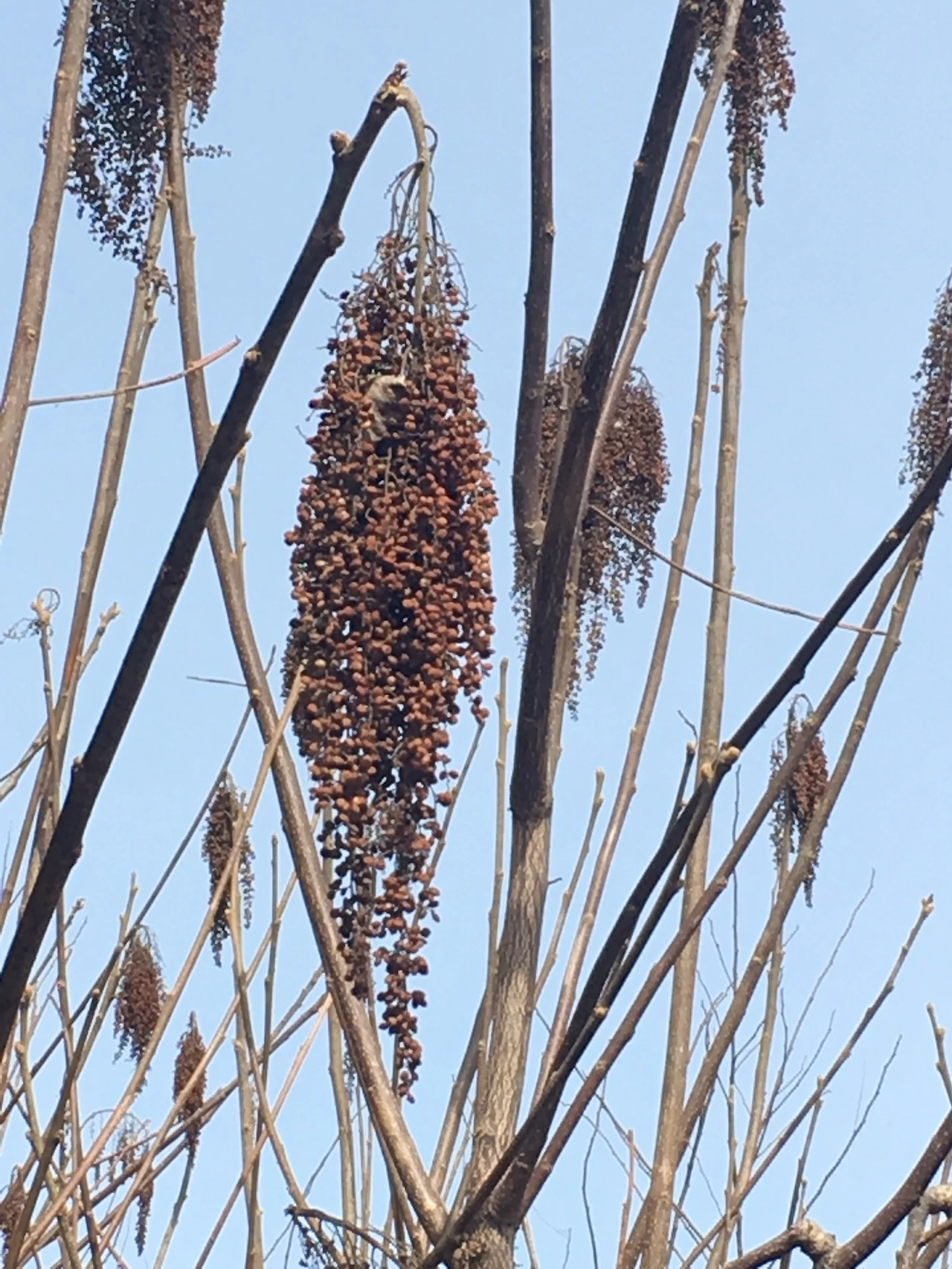 산책 중, 매달린 열매 꾸러미를 보고 사진에 담았다.