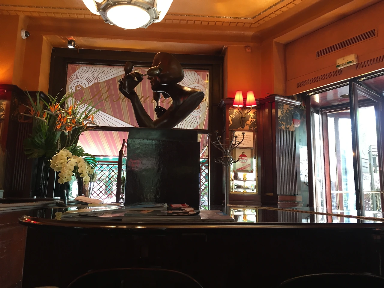 헤밍웨이와 사르트르의 자리는 그랜드 피아노 바로 옆이다. 감미로운 재즈 피아노 연주를 기다리며... /카페 클로드 릴리, 파리