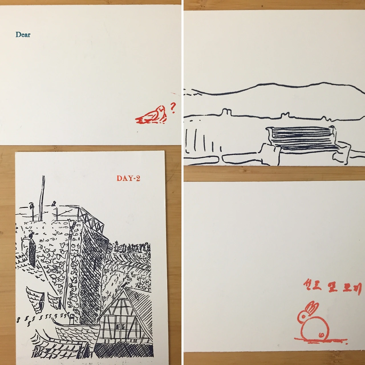 2014년, 유럽 여행 중 그 자리에서 끄적인 낙서를 통대로, 세상에 하나뿐인 엽서(hot print)를 만들었다.