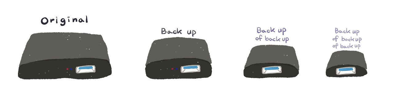 기술 발전으로 저장물의 바뀌면서 사람들은 CD며 외장하드를 열심히 관리했다. 사진도 굽고, 영화도 굽고, 게임도 굽고, 야동도 구웠다. 누나가 남동생의 외장하드를 인질 삼아 치킨을 요구하는 일도 누구나 들어봄직한 사건이고, 뻑난 외장하드를 들쳐 업고 복구 센터로 달려가 지난 몇 년간의 과제물들을 살리고 싶어 발을 동동 구르기도 한다. 백업의 백업을 만들고, 백업의 백업의 백업도 만든다.