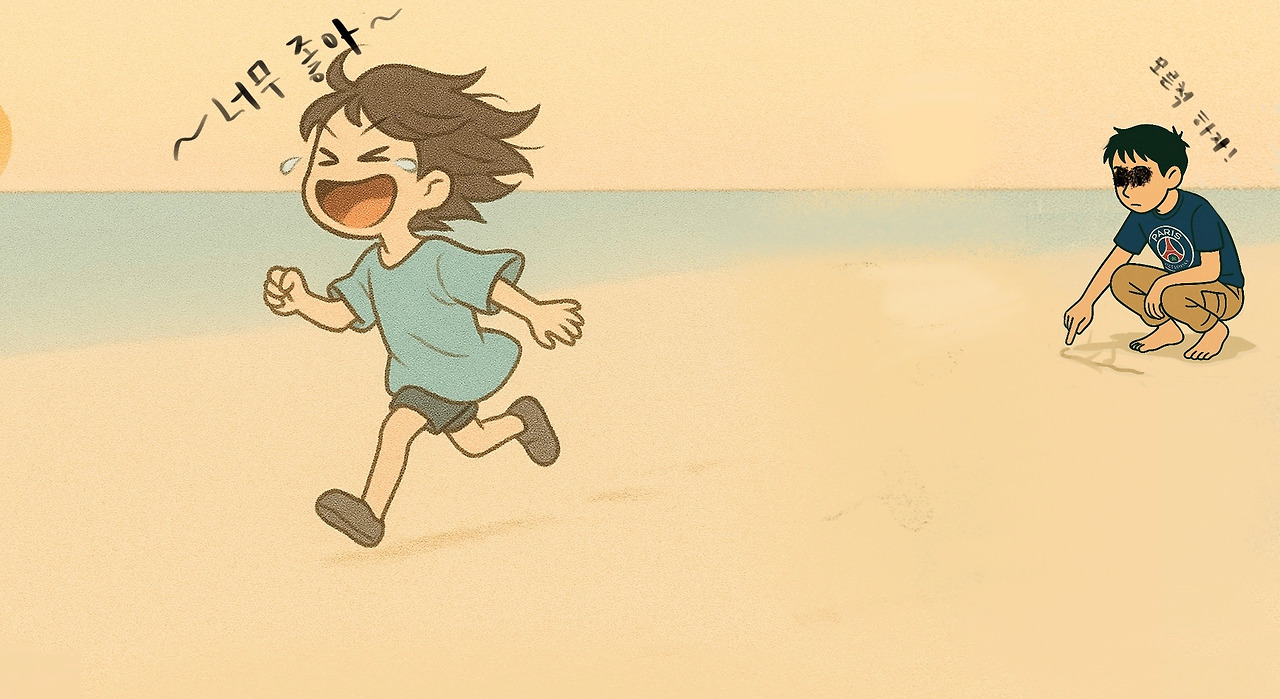 그렇게 바다가 좋으면 자주 가야 할 것 같은데 막상 잘 안 가게 되는 이유는… 결국 귀찮아서겠지? 수영복이나 여벌 옷 챙기고, 돗자리나 파라솔, 음료수와 간식까지 준비해야 하고, 놀고 나면 온몸에 붙은 모래도 떼어내기 힘들고… 아이들이 어릴 땐 그게 더 힘들어. 씻겨놔도 다시 모래가 붙고, 결국 차 안도 모래밭이 되지. 이런저런 거 따지다 보면 사실 어디든 가기 힘든 건 마찬가지야.