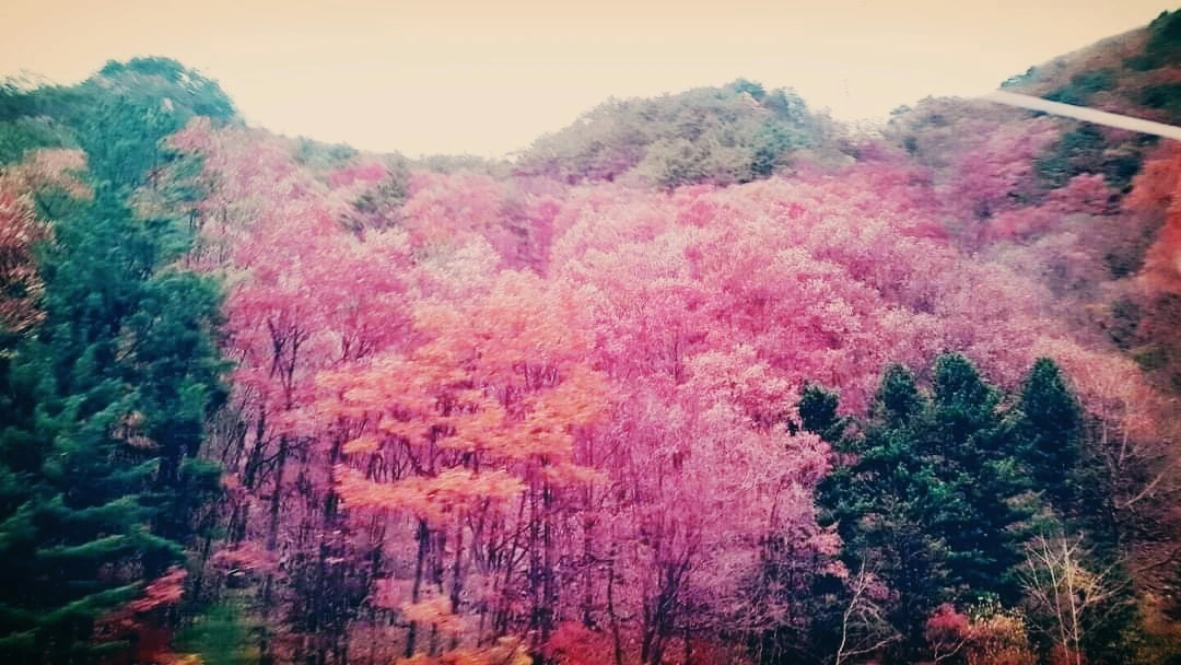 (신비로운 붉은단풍나무 군락. 서울가는 고속도로. 2019.)