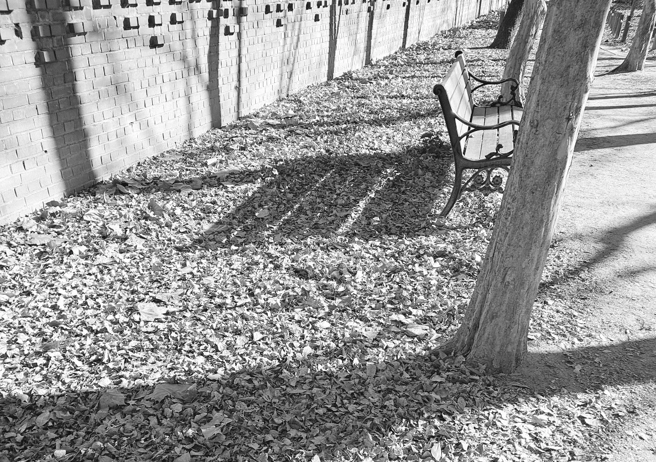 딱딱하고 넉넉한 텅 빈 의자, 헐벗은 까칠한 나무,