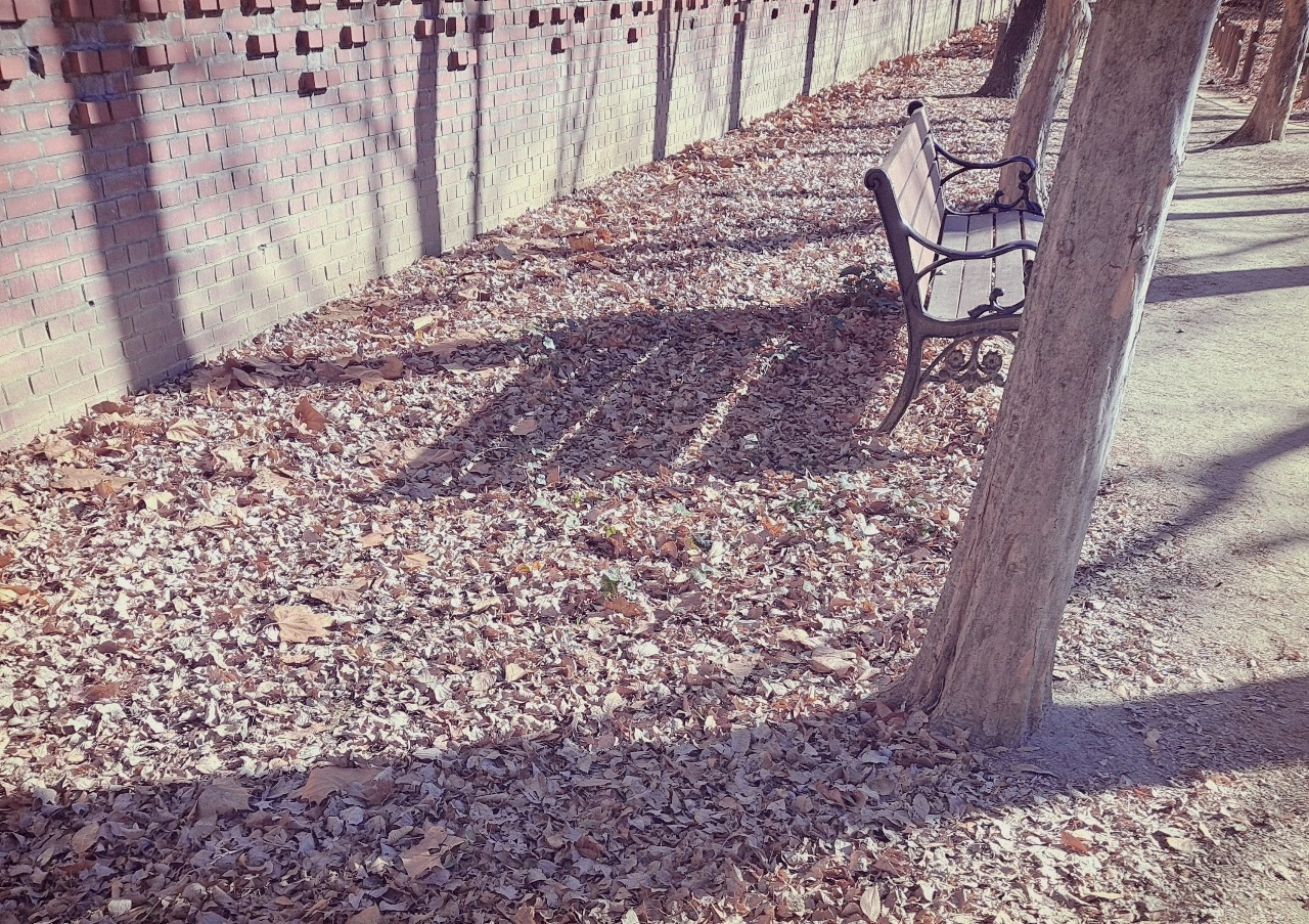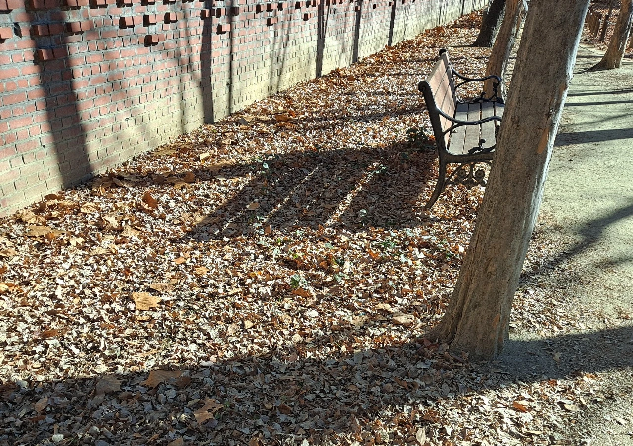 옅은 색깔 낙엽, 서늘하고 느린 바람.