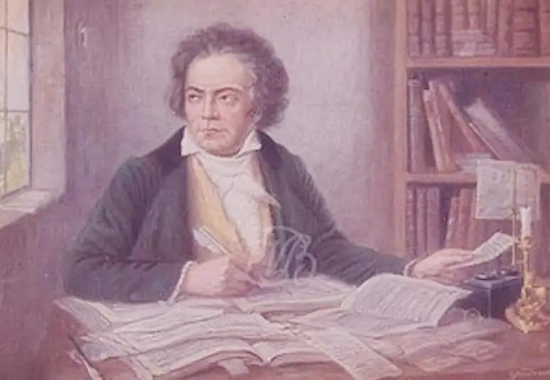 2. 깃털 펜을 든 베토벤 모습. 아마도 청력 문제가 점점 심해져 올 때.