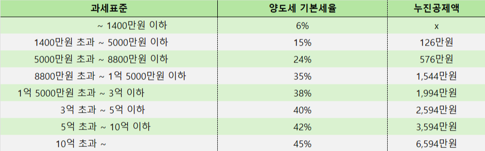 $ 양도세 = 과세표준 x 기본세율 - 누진공제액