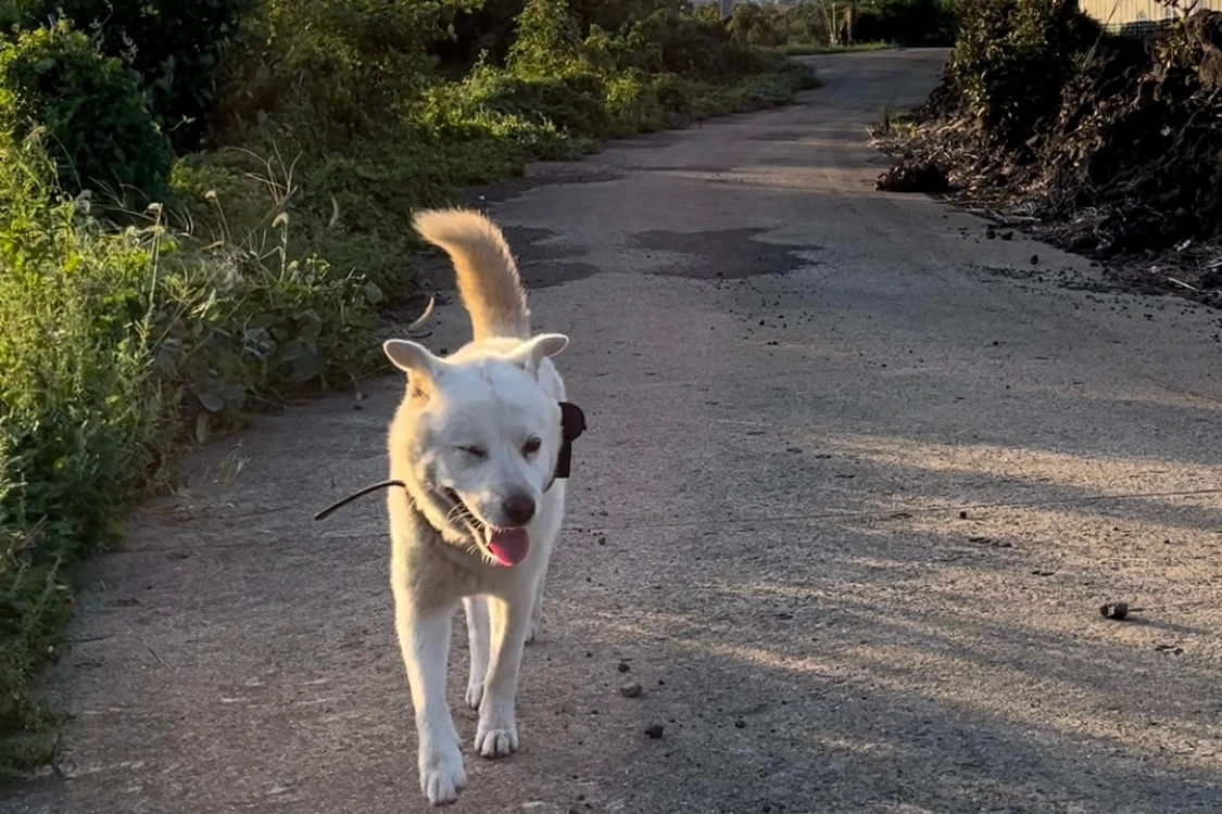 마지막으로 내 산책 메이트이자 제주에서 처음으로 사귄 친구인 '똘이', 주인집 강아지다. 어렸을 적 동네를 재패하다 눈을 다쳐서 항상 윙크를 하고 있다.