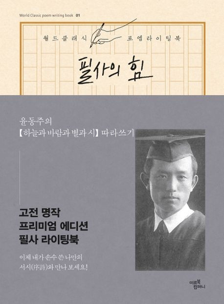 이런 ‘필사족’들을 위해 미르북컴퍼니에서 나온 《필사의 힘》 시리즈를 소개할까 한다. 그중 ‘윤동주의 [하늘과 바람과 별과 시] 따라 쓰기’는 디지털 시대에 나만의 손글씨로 시인의 감성을 되찾게 해 주었다. 책의 왼쪽에 문학 작품의 텍스트가 있고, 오른쪽에는 왼쪽 문장을 보며 옮겨 쓸 수 있는 공간이 있다는 것이 이 책의 특징이다.