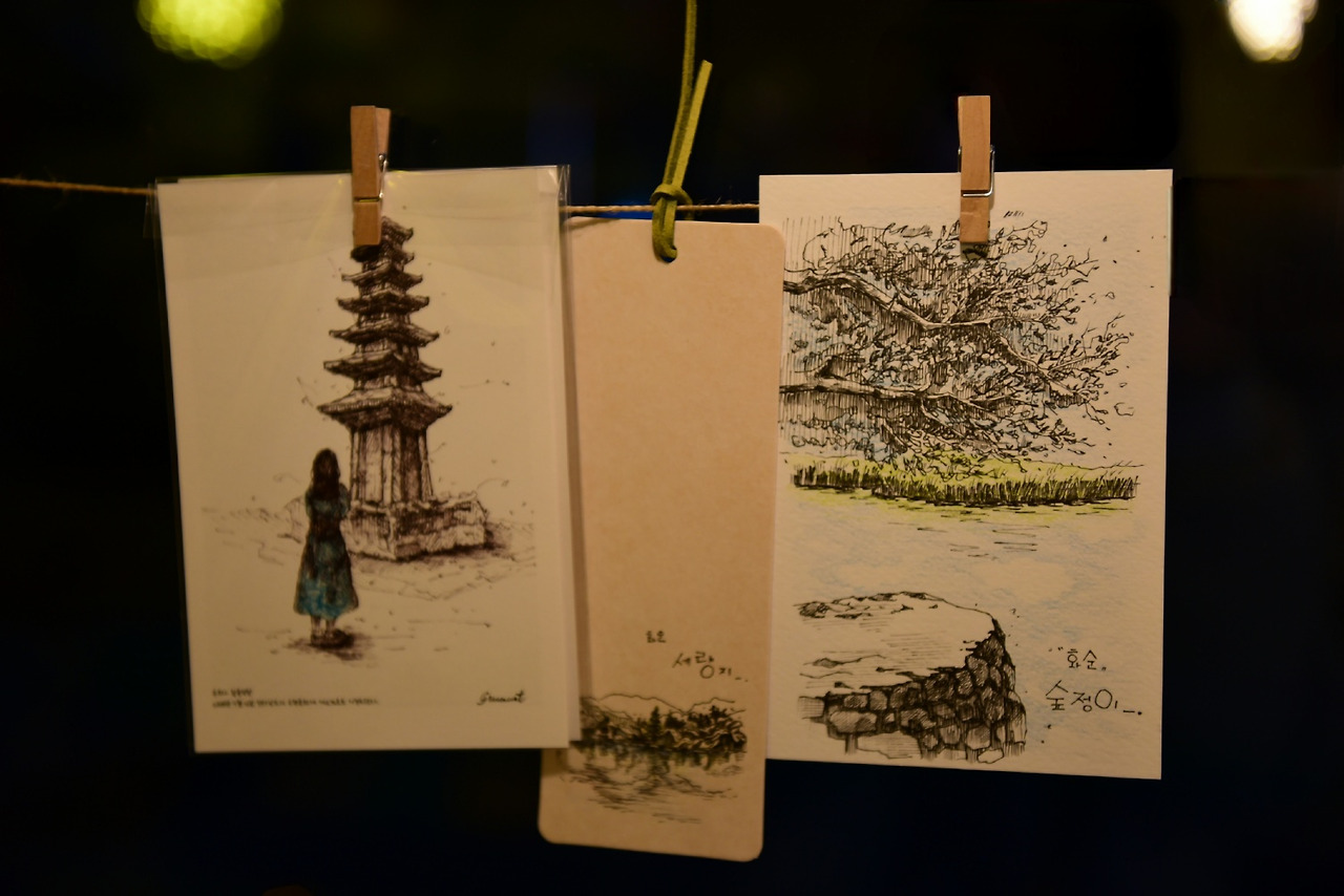 “저희 책방에 오면 화순의 의미 있는 장소가 담긴 그림엽서를 만날 수 있어요. 자칫 잊혀질 수 있는 장소나 지역 상가를 그려가고 있거든요.”라면서 그림엽서를 소개했다. 이번 제25회 운주문화축제를 앞두고는 운주사의 석탑이나 와불을 그리면서 준비했다고.