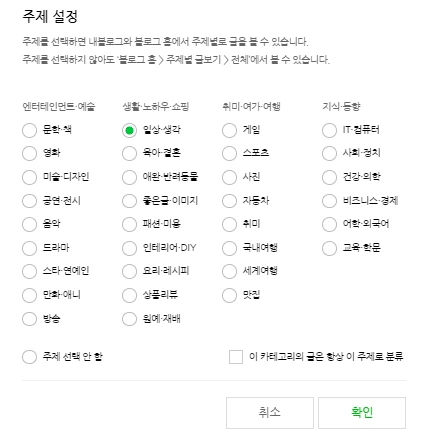 블로그를 해보겠다고 마음먹었을 때 가장 큰 장애물이 바로 주제 선정이다. 어떤 주제로 글을 써야 할지 막막할 것이다. 특히나 평소 글을 써보지도 않았는데 500자 이상의 글을 쓸 주제를 찾는 것은 더욱 어렵다.