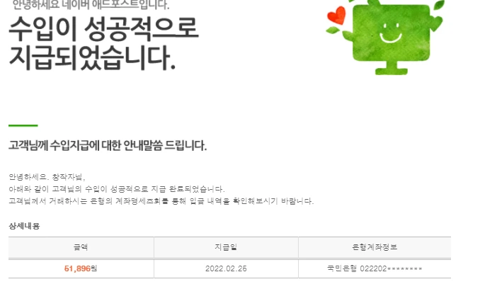 9개월 정도 블로그를 운영해 보았다. 애드포스트 광고비는 총 61,896을 지급받았다. 7개월간 운영하여 받은 수익이다. 통계를 보니 한 달에 1만 원에서 9천 원 정도의 수익이 있었다. 한 참 1일 1 발행을 하던 시기였는데 매우 아쉬운 수익이라는 생각이 들었다.