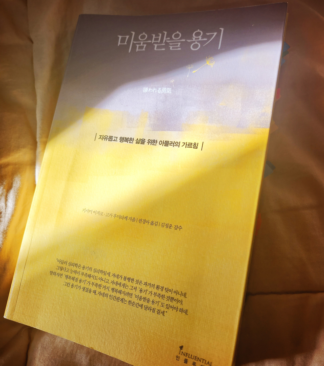 < 미움받을 용기 >는 제 인생을 통틀어 가장 인상 깊게 읽은 책입니다. 왜냐면, 저는 오랜 세월 동안 스스로를 열등한 존재로 인식하고 지냈기 때문입니다. 환경 탓을 했고 더 나아가서는 저 자신을 미워했습니다. 일이 뜻대로 풀리지 않으면, 나 자신을 학대했습니다.