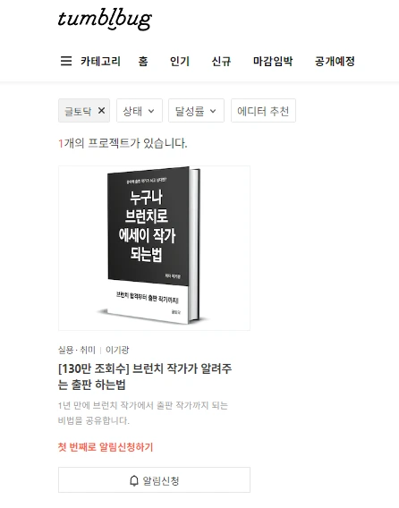 안녕하세요. 글토닥입니다.텀블벅 프로젝트 펀딩은 공개 예정 상태입니다. 알림 설정을 눌러 주신다면, 저에게 큰 힘이 됩니다.구독자분들의 많은 관심과 응원 부탁드립니다. 감사합니다!