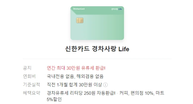 내가 쓰는 신한카드 경차사랑