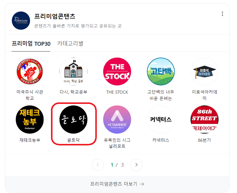 프리미엄콘텐츠에서 잘 팔리는 글 주제는 ' 부동산과 주식 '이다. 실제로 네이버 프리미엄 콘텐츠에 들어가 보면, 대부분의 상위권 채널들의 주제가 부동산, 주식, 재테크인걸 확인해 볼 수 있다. 글토닥 채널은 그 치열한 경제 지식 콘텐츠 시장에서 자기 계발, 인문학 칼럼으로 살아남은 것이다.