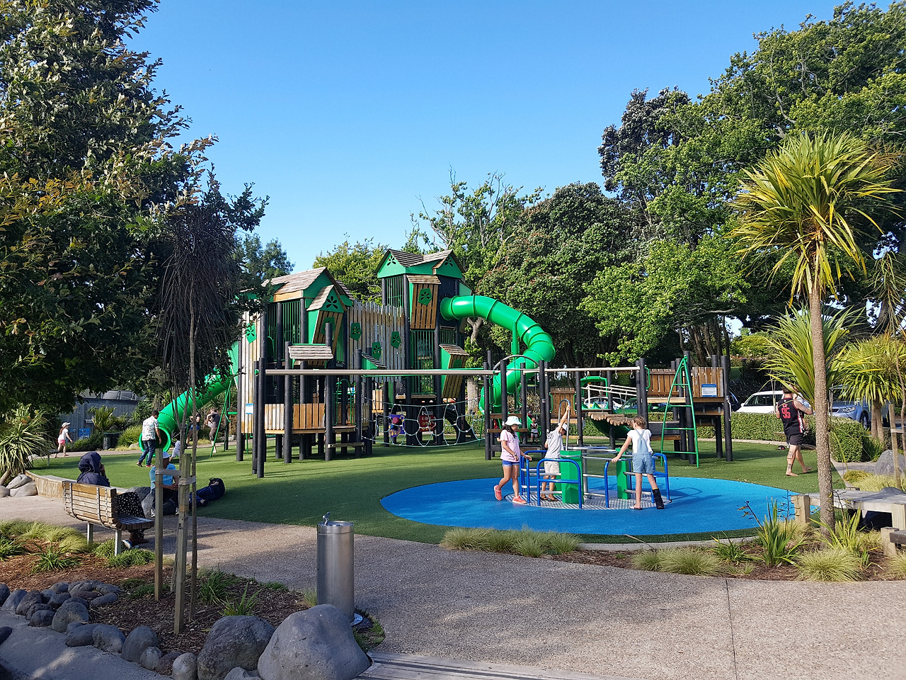 비가 온 덕분인지 조금 흐리고 바람도 시원하고 놀이터에서 딱 놀기 좋은 날씨다. 다양한 높이의 몽키 바, 봉 타기, 펌프 수로 그리고 아이들이 제일 좋아하는 짚라인이 있는 신상 놀이터로 향한다. 주말을 보내는 방법은 호숫가나 놀이터에서 시간을 보내는 경우가 많다. 가끔 돈을 내고 롤러스케이트장, 트램펄린장, 클라이밍장, 레이저 테크로 향하기도 한다. 늘 그렇듯 물은 챙기고 점심이나 간식거리를 사 가지고 가는 것은 필수이다. 놀이터 옆 카페에서 파는 물은 4불이나 한다. 물값으로 주머니를 털리긴 싫다. 처음에는 한인마트에서 재료를 사 와 김밥이나 삼각김밥을 싸 오곤 했는데 점점 더 간편한 것을 선호한다. 서브웨이나 Hell 피자에 들르는 횟수가 늘어난다.