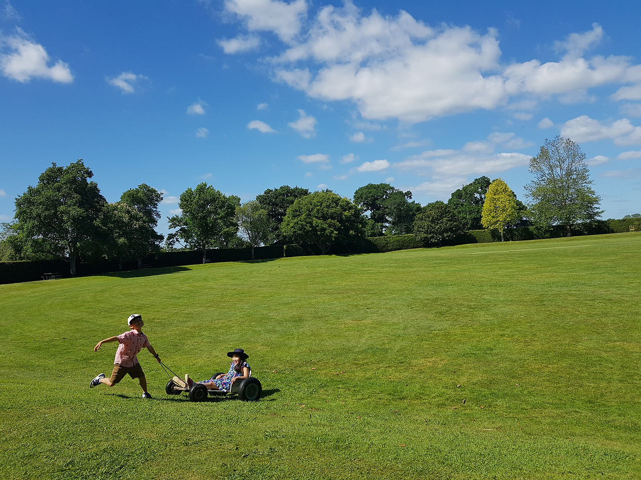 뱃살이 살짝 티셔츠 바깥으로 튀어나온 푸른 눈의 중년의 남자. 남색 반바지에 슬리퍼를 신고 있는 넉넉한 살집의 중년의 여자. 그리고 14살 전후로 보이는 그들의 아들과 10살 전후로 보이는 딸. 부모는 아이들을 위해서 열심히 놀아주고 있다. 나무를 타고 몽키 바를 두 번 왔다 갔다 한 다음 평균대에 떨어지지 않고 걸은 다음 뱅뱅이를 타고 두 바퀴를 돌고 다람쥐통에서 20걸음을 걷고 난 후 놀이기구에 올라간 다음 봉을 타고 내려와 포인트 장소까지 오기. 4명 각각 몇 초가 걸리는지 시간을 잰다. 봐주는 것은 없다. 그 부모의 표정을 가만히 지켜본다. 유치하다. 표정이 생기가 있다. 아이들과 노는 것이 재미있고 신난다는 표정이다. 천진난만한 표정이다.