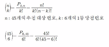 요 며칠 밥을 든든하게 먹고 잤더니 어젯밤에는 돼지꿈을 꾸었다. 복슬복슬한 분홍색 돼지가 덜컥 내 품 안으로 뛰어들었다. 눈을 뜨자마자 스스로 내입에 함구령을 내리고는 집 앞 편의점으로 달려가 1등 당첨금 5억의 로또 복권을 샀다. 어젯밤 돼지꿈을 꿨다면 1등 당첨금이 20억이나 되는 복권을 샀다. 1등에 당첨될 확률은 대략 길가다가 벼락 맞을 정도로 낮다. 그 숫자가 어느 정도로 낮은지 보여주기 위해 수학적인 지식을 동원해 보면, 45개의 번호 중에서 6개를 골라내는 경우의 수는 8,145,060이고, 이 중 1개의 조합만이 1등이 되는 것이니 그 확률은 0.0000123%다.