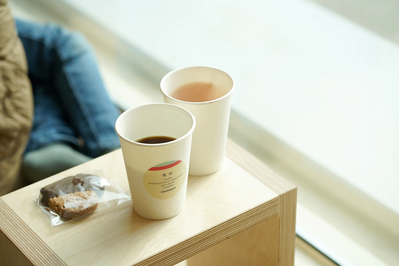 카페 한 쪽에서는 커피 향을 맡아볼 수 있는 코너가 있다. 원두도 판매중이다. 여기서 판매중인 다양한 커피들의 원산지와 맛, 향 등을 설명해놓았는데 커피 향을 맡으면서 내가 좋아하는 원두를 찾았다. 이 곳에서는 커피 원두 뿐 아니라 드립백, 콜드브루, 인스턴트 커피 등등 다양한 종류로 커피를 즐길 수 있는 것들을 판매한다. 실제로 내가 카페에 있을 때 커피를 마시려고 온 사람들보다 커피를 구매하려고 온 분들이 꽤 있었다. 이 곳 한 켠에는 사무실이 있는 것 같은데, 까페가 쉴 때에도 원두는 판매를 하고 있다고 한다. 역시 전문점이구만. 나는 내가 고른 원두로 만들어진 드립백 두 개를 샀다.