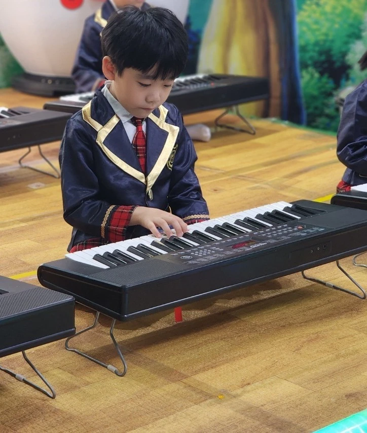 음악으로는 피아노, 바이올린, 드럼을 경험시켜 주셨어요.
