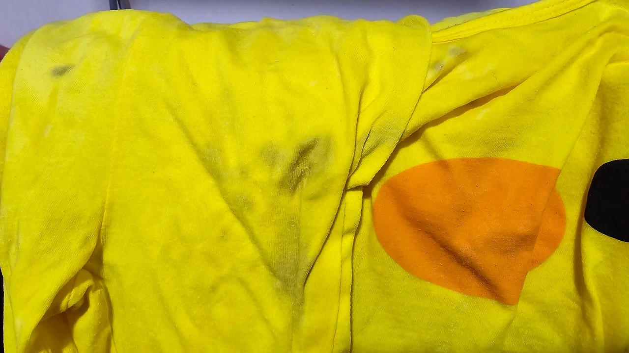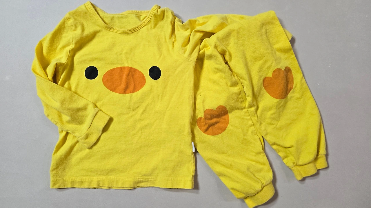 건조기까지 돌리고 옷가지를 하나하나 개다가 발견한 노란 오리옷!